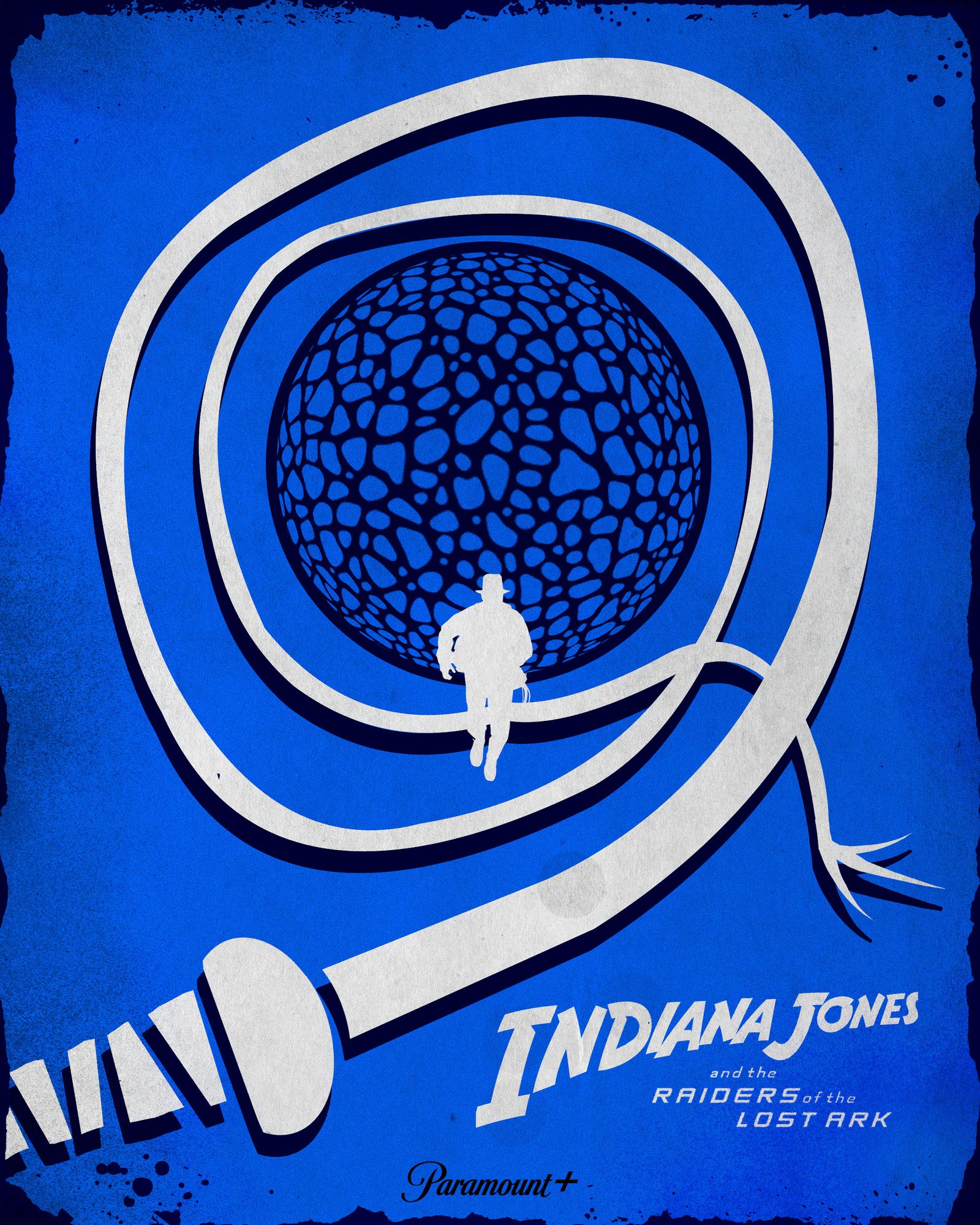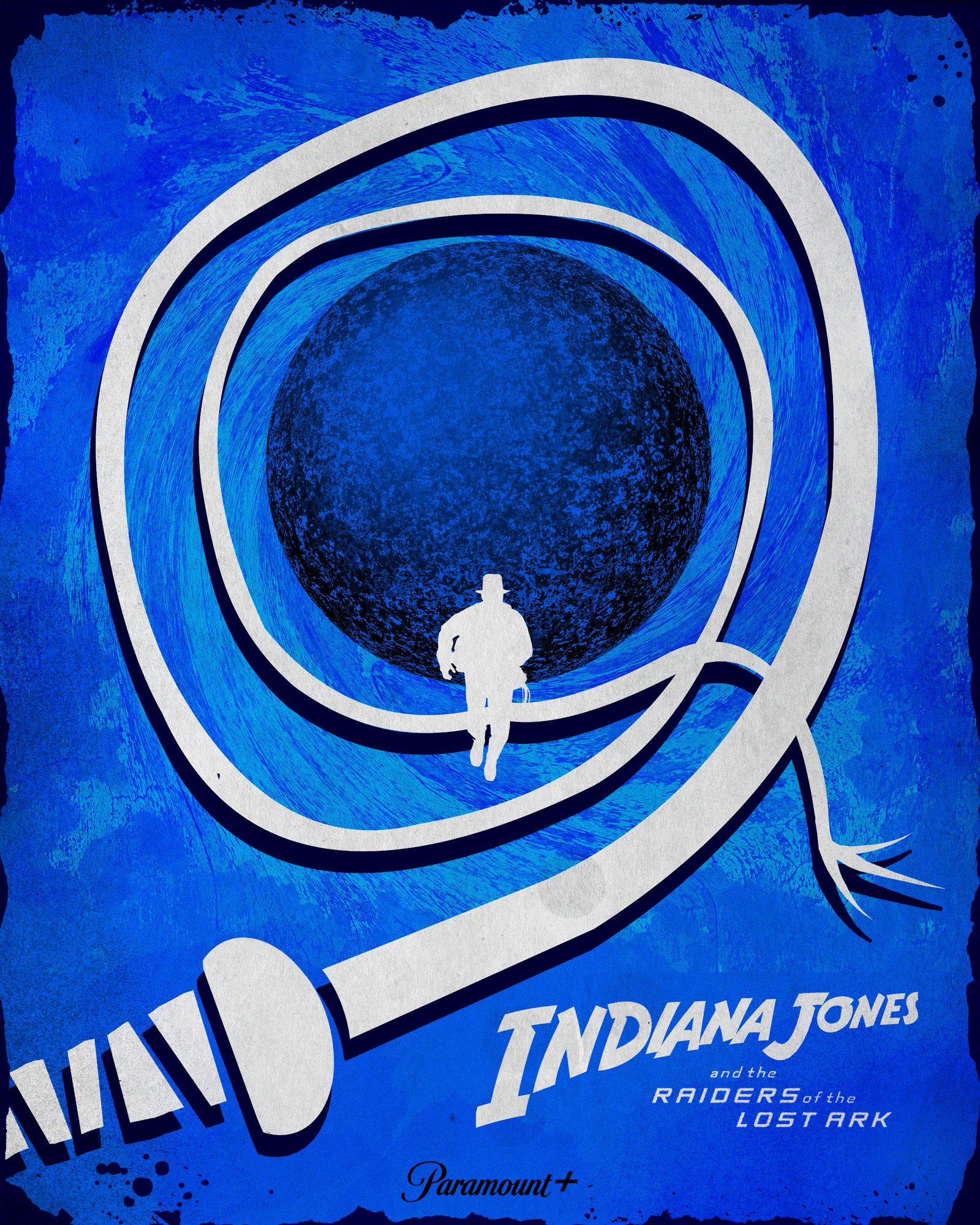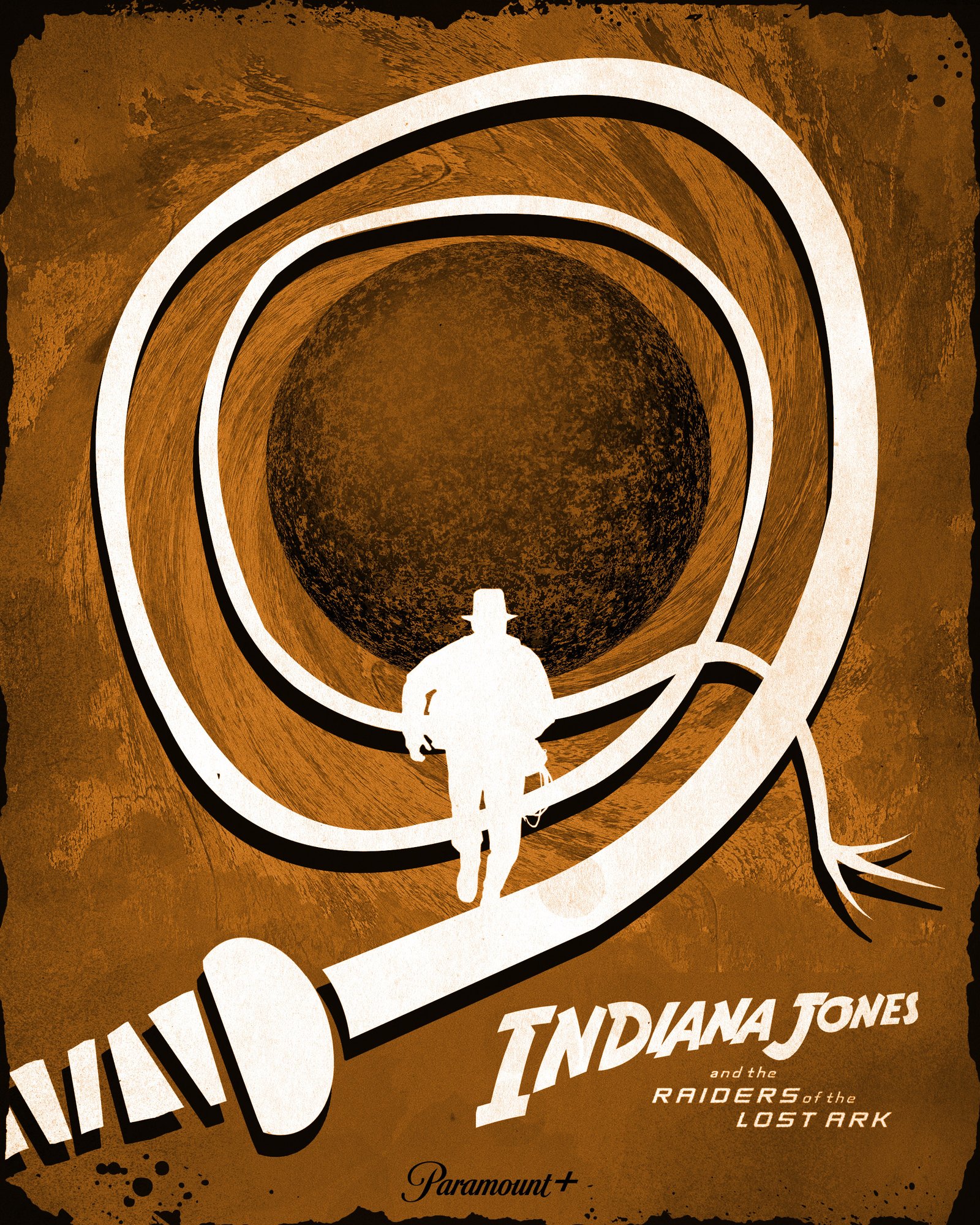For this Indiana Jones and the Raiders of the Lost Ark key art, I took a minimalist approach to capture the essence of one of cinema’s most iconic scenes. The composition uses the hero’s bullwhip, coiled in concentric circles, to subtly evoke the cave setting and frame the looming boulder he’s fleeing. This interplay between negative space and shape creates motion and tension while keeping the design clean and graphic. I initially worked within Paramount's signature blue palette but ultimately opted for a rich, earthy brown—a nod to the franchise’s rugged, adventurous tone. Unfortunately for this artwork, approvals were reached just days before the franchise was removed from Paramount’s streaming service and while it was never officially released, the design remains a loving homage to Indy’s timeless legacy.