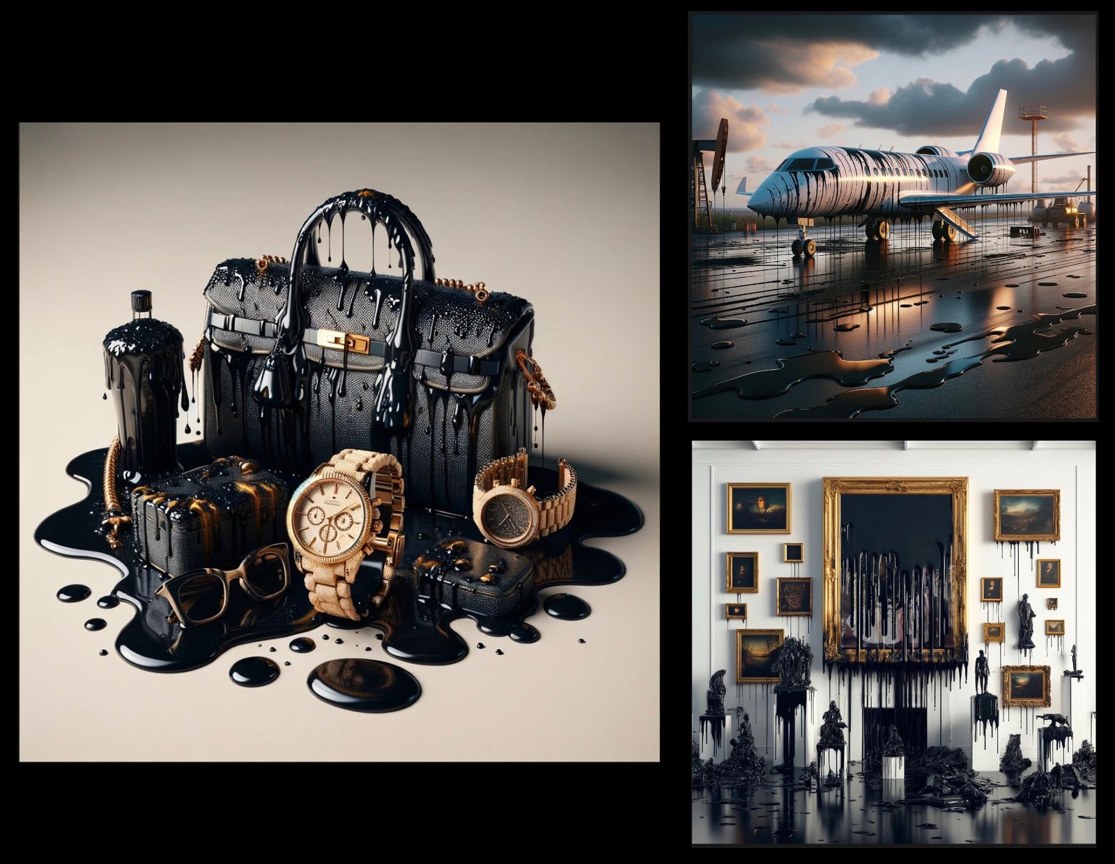 For the series debut of Taylor Sheridan’s Landman, I developed concepts for experiential marketing installations that delve into the series' fraught intersection of wealth and humanity. One concept was a billboard featuring a functional flaming oil derrick that would later be quietly swapped with a replica appearing to have burnt to the ground. Another concept imagined a billboard with a rig appearing to have sprayed oil all over its surroundings, creating visual disruption in a real-world setting. Urban oil rig pop-ups and the "Filthy Rich" installations—luxury items drenched in oil—extended the narrative into public spaces, reflecting the human cost of success and excess. Each of these ideas would have merged bold theatrics with sharp commentary and create buzz by blurring the line between reality and promotion.