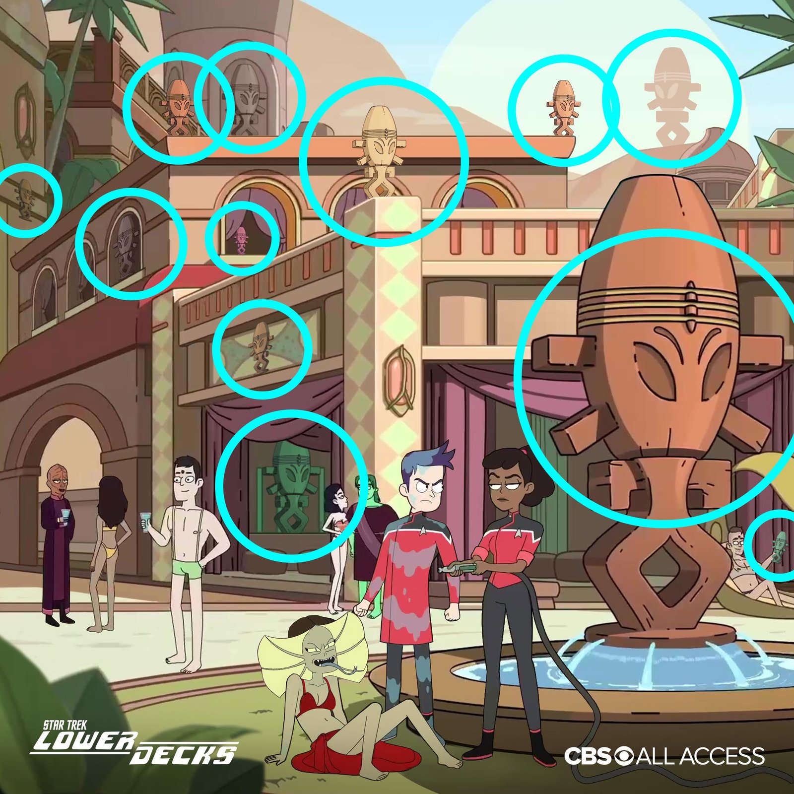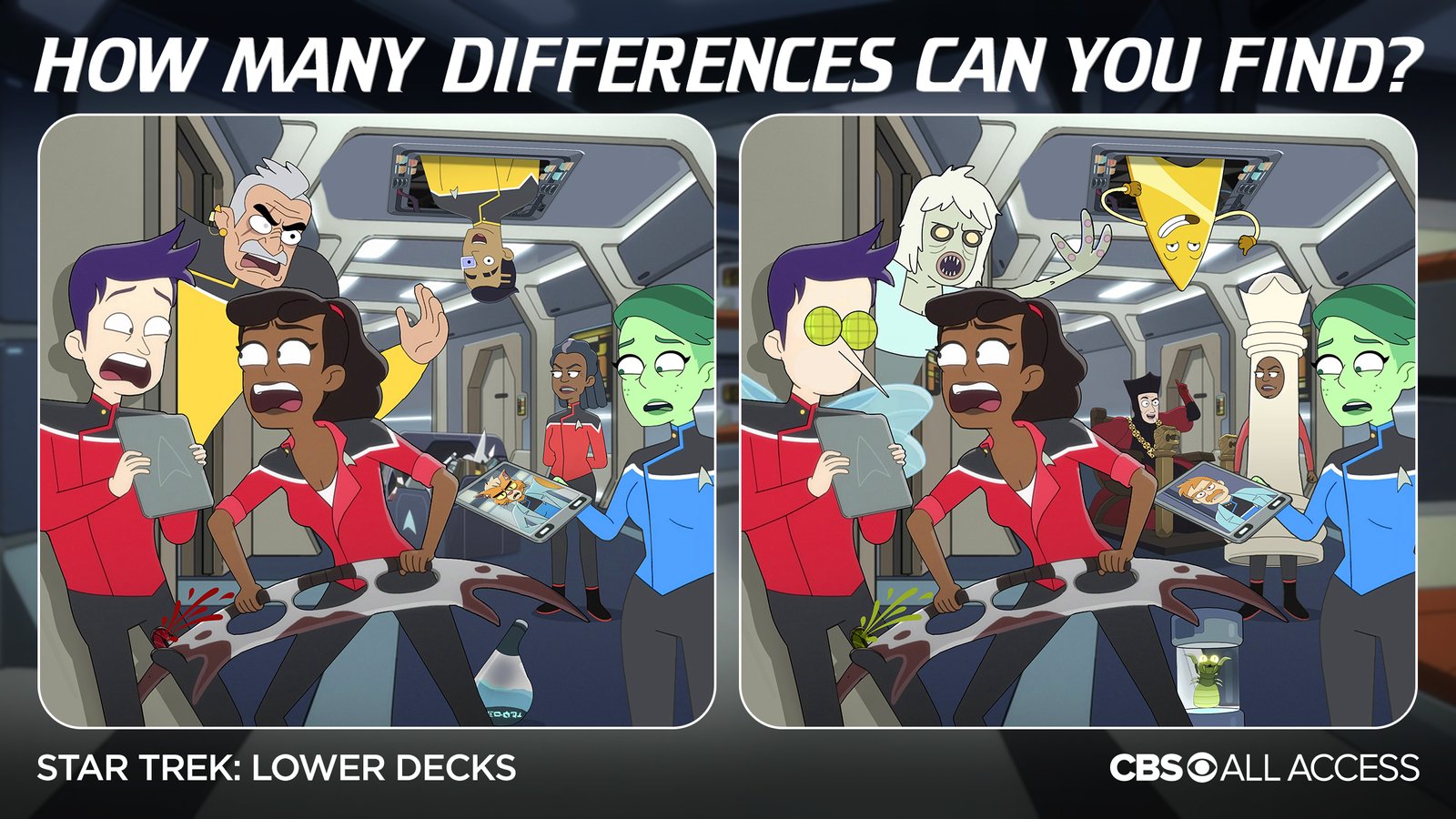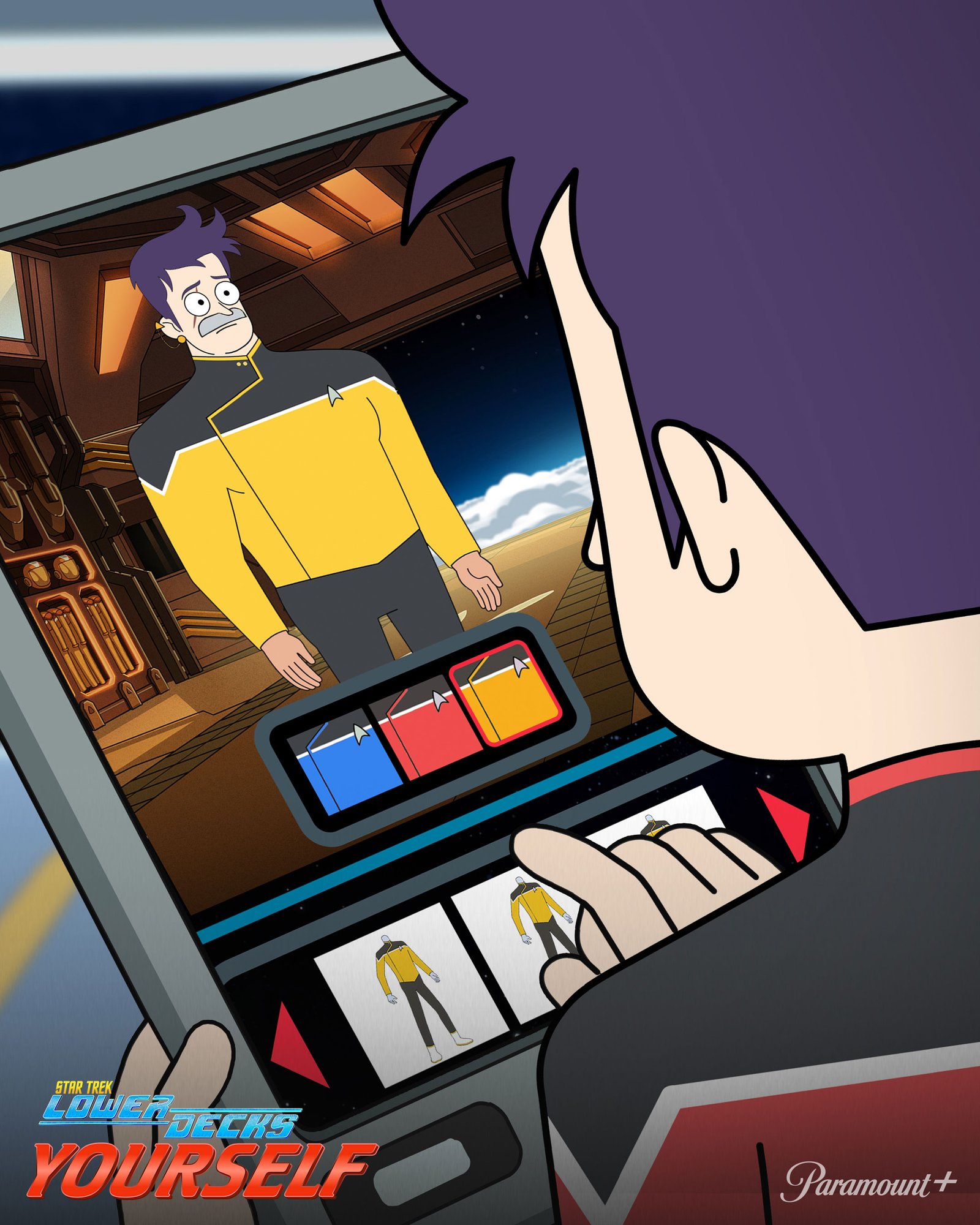 This selection highlights gamified experiences designed to engage fans of Star Trek: Lower Decks through playful interactivity. The first is a “Find the Horga’hn” challenge, inviting users to locate several of these iconic statuettes hidden in a scene on Risa. The second is a "spot the differences" concept that swaps out elements in an image of the main characters with changes tied to events from the series, rewarding keen-eyed viewers familiar with the show’s details. The third is a promo for an app that allows users to make themselves into a Lower Decks officer. In this case, we catch Boimler fantasizing about putting himself in the body of Lieutenant Shaxs. These games blended simple mechanics with thoughtful design, creating fun, immersive experiences that deepened audience engagement with the world of Lower Decks.