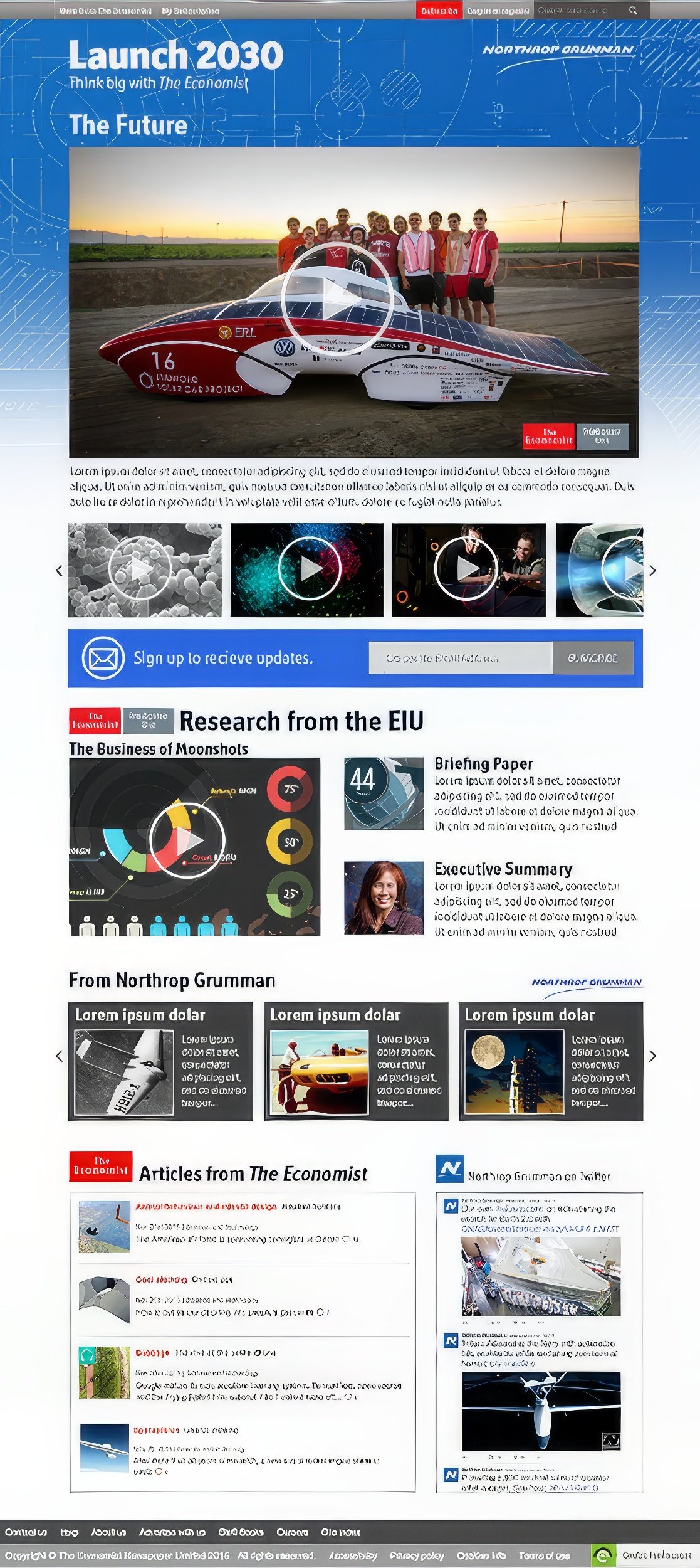 This collection showcases art and copy I created for The Economist’s high-profile advertising partnerships. From print and digital ads to app designs and web activations, each piece was tailored to reflect the unique brand identity of partners like UBS, General Electric, Warby Parker, UPS, Glenmorangie, American Airlines, Microsoft, Goldman Sachs, Hyatt, Northrop Grumman, and others. Balancing The Economist’s intellectual gravitas with the distinct tone of each client, these projects delivered sophisticated visuals and messaging to engage a discerning audience. By weaving compelling narratives and clean design, the work underscored the value of these partnerships while maintaining The Economist’s legacy of thoughtful, impactful advertising.